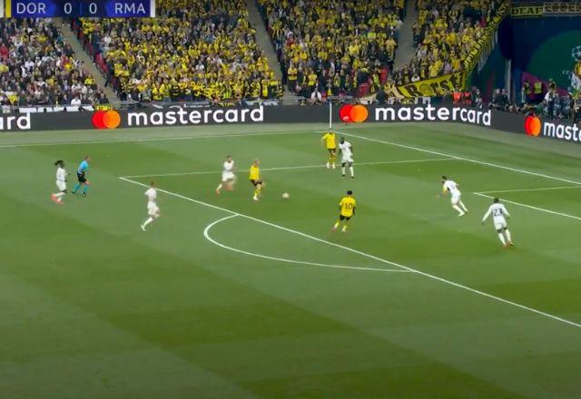 Aos 13 minutos de jogo, o atacante Fullkrug recebeu pela esquerda, dominou e fez o passe para Julian Brandt finalizar a primeira vez com perigo para o Borussia Dortmund.